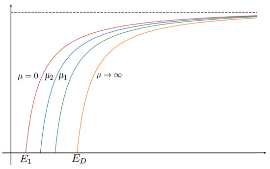 Notice that for , has two distinct zeros, with . We now state the results for this case with an expected bifurcation curve presented in Figure 1.