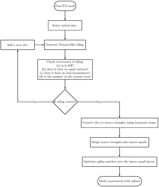Figure 4 presents a flowchart of the algorithm to pass from a TO mesh to a spline layout described in the following subsections. The procedure, in particular, undergoes the following stages:
