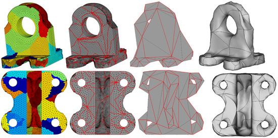 - Usai, F.; Livesu, M.; Puppo, E.; Tarini, M.; Scateni, R. Extraction of the Quad Layout of a Triangle Mesh Guided by Its Curve Skeleton. ACM Trans. Graph. 2016, 35, 6. [Google Scholar] [CrossRef]