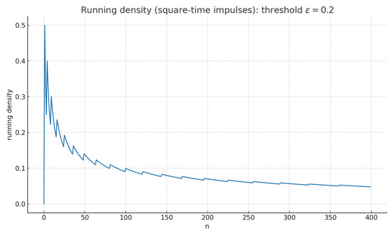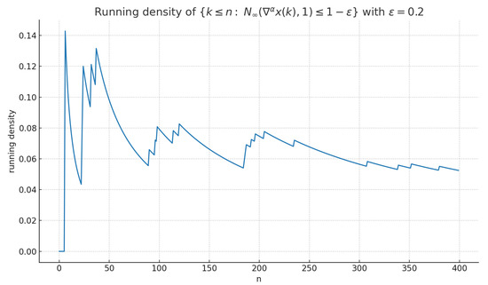 A simple motivating example illustrates why density-based and fuzzy notions provide robust surrogates for bursty data: for and any proper fraction the fractional differences are non-zero only near cubic indices—a set of natural density 0—so is statistically (and, with , fuzzily statistically) convergent to 0 [5,9].