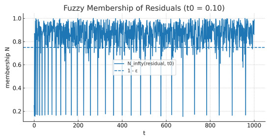 We adopt the Bag–Samanta fuzzy norm induced by the sup-norm, . Given a computed trajectory x , we form the residual
