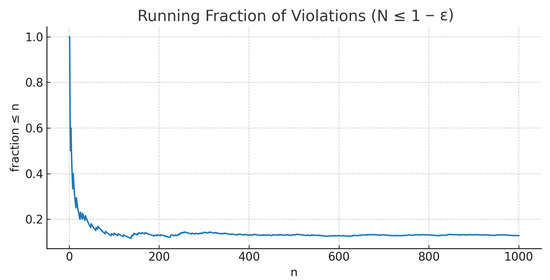Report and the limits , , plus a plot of . When , the residual violations are of natural density zero, which certifies the fuzzy statistical robustness claimed in Section 4.