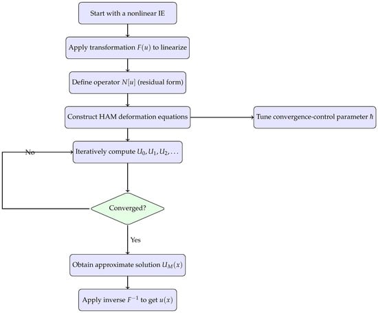Flowchart of the HAM procedure for solving nonlinear integral equations.