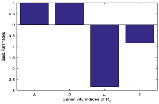 This section investigates the impact of model parameters on the basic reproduction number . Sensitivity analysis helps us to understand how changes in parameters influence the transmission and spread of the disease within the model.