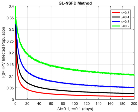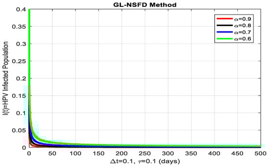Graphical illustration of the HPV infectious population across different fractional-order values .