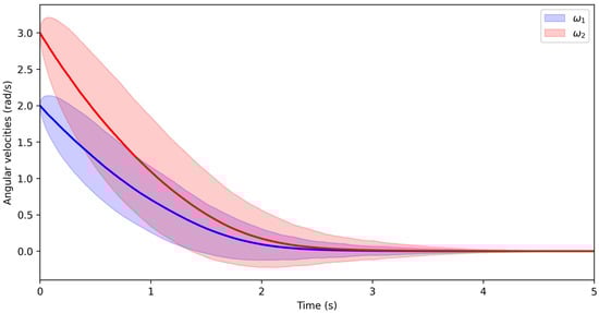 where , , , and are the principal moments of inertia of the spacecraft such that , , , and are the angular velocities of the spacecraft in the body frame; and are spacecraft control moments; and are standard Wiener processes capturing perturbations in the system dynamics; and .