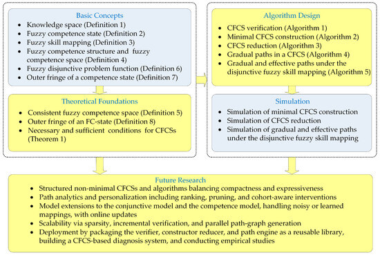 The rest of this paper is organized as follows: Section 2 reviews CFCSs and related basic concepts. Section 3 presents a simplified method to verify whether a fuzzy competence structure is a CFCS and introduces construction methods for CFCSs. Section 4 proposes a gradual and effective learning path recommendation algorithm. Section 5 presents simulation experiments, and Section 6 concludes the work and outlines future research directions.