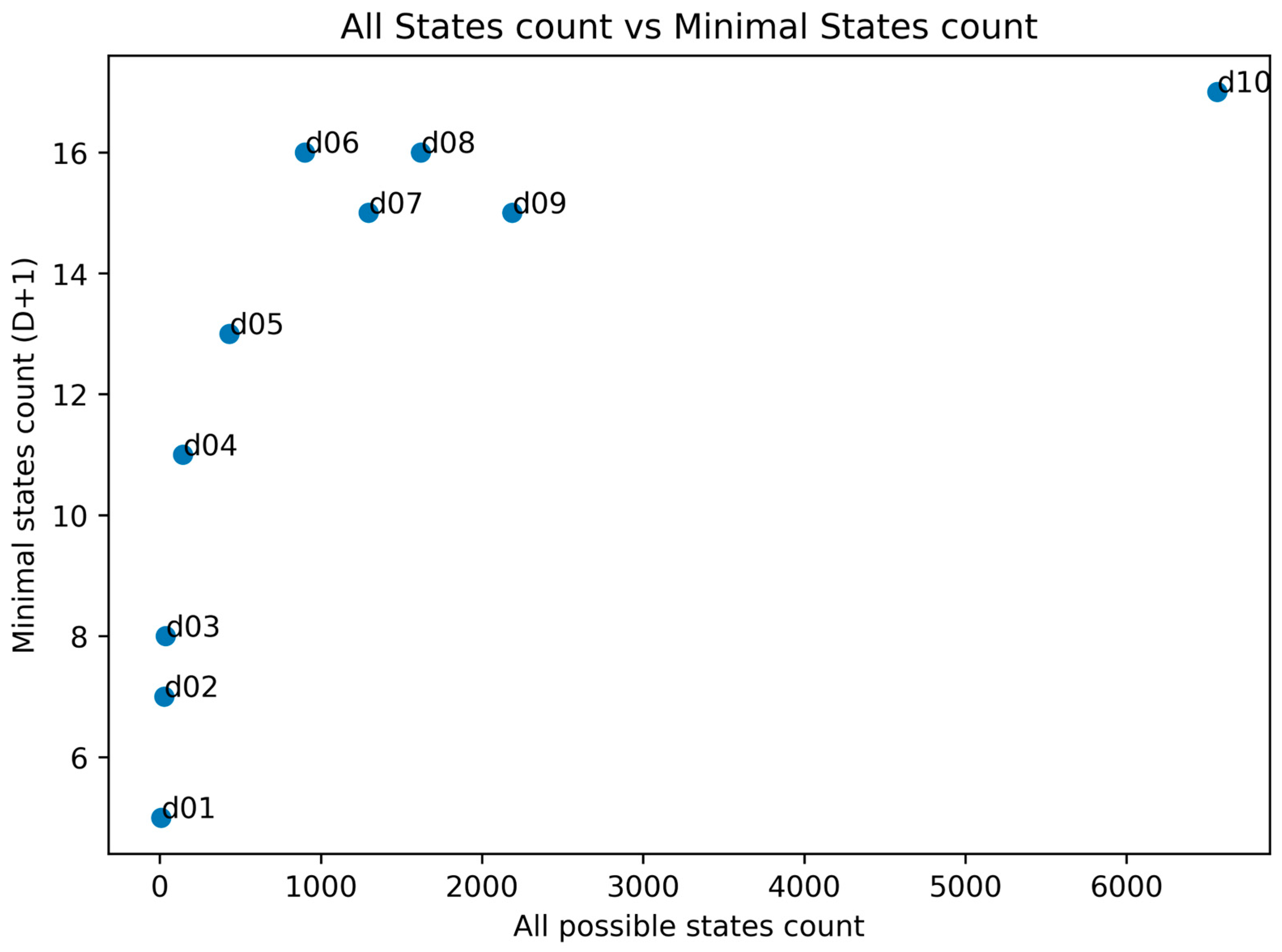 First, sort lexicographically by in ascending order and relabel the states as in this new order. Each proficiency level set is indexed in ascending order: Replacing each proficiency in a state with its index yields an integer vector . The sorted states and their integer vector encodings are presented in Table 6. Second, check union-closure. For each , compute and verify . All pairs satisfy this property.