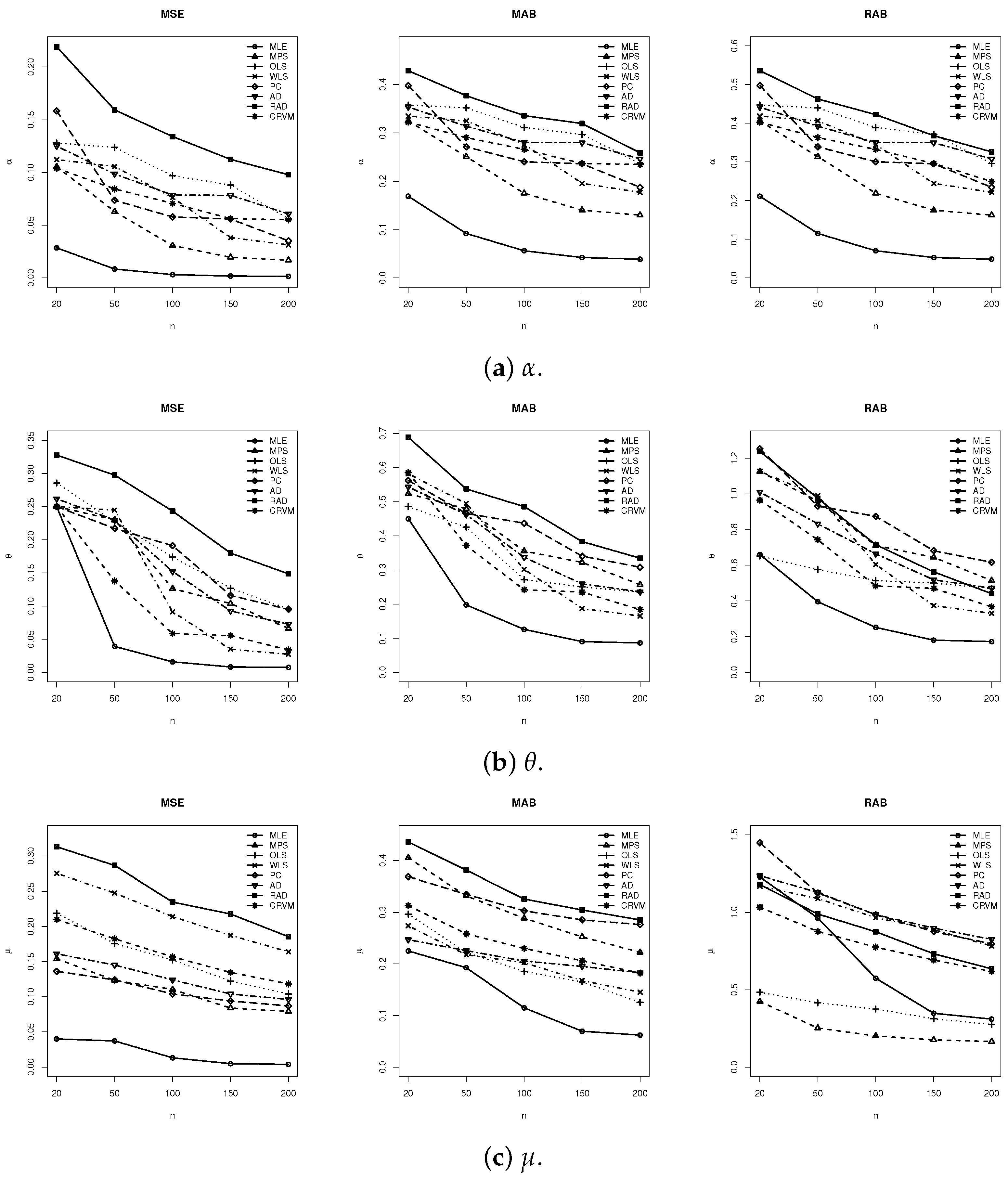 Figure 2 displays the simulated results, including MSE, MAB, and RAB values corresponding to the parameters