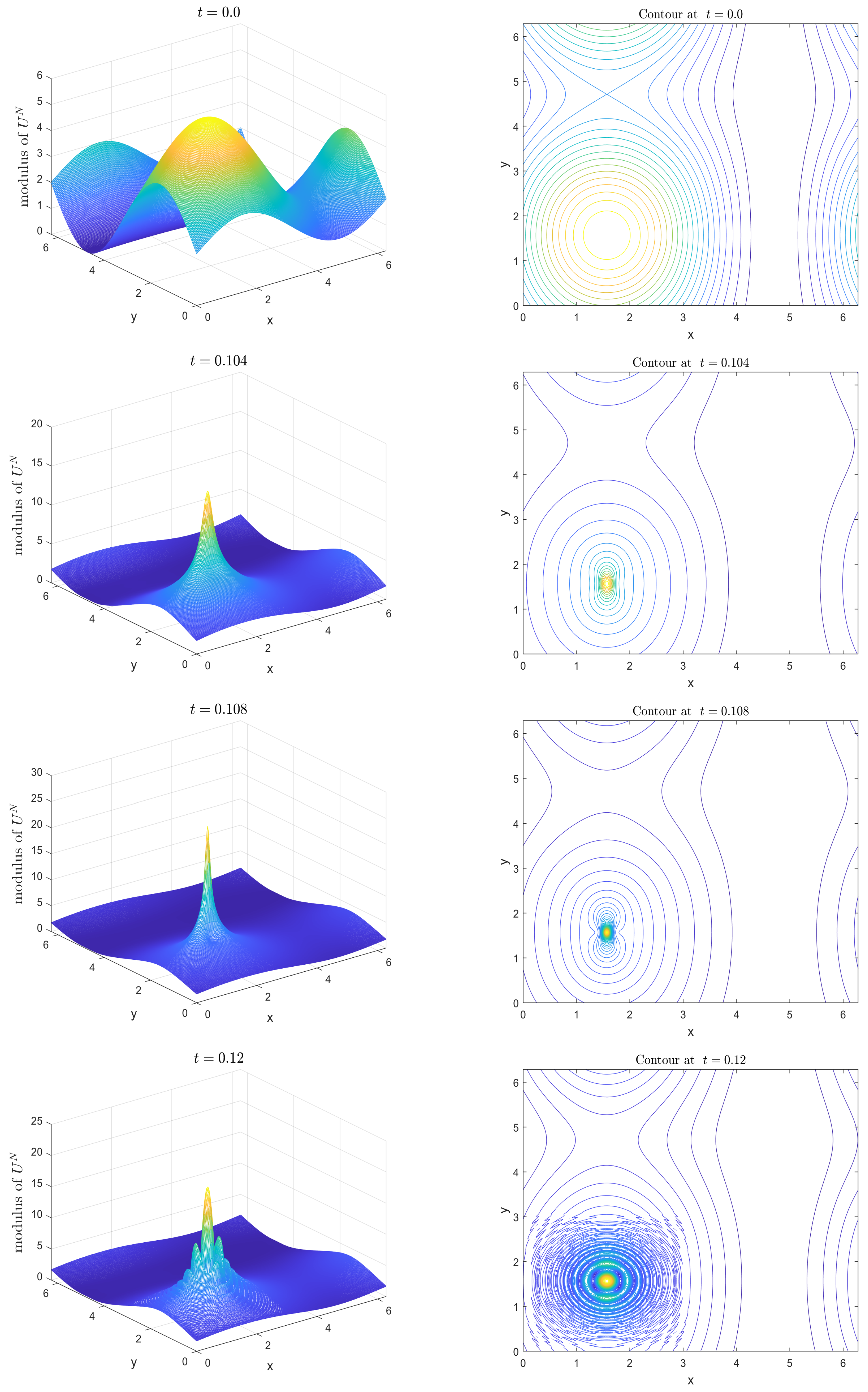 - Zhang, R.; Zhu, J.; Yu, X.; Li, M.; Loula, A.F.D. A conservative spectral collocation method for the nonlinear Schrödinger equation in two dimensions. Appl. Math. Comput. 2017, 310, 194–203. [Google Scholar] [CrossRef]