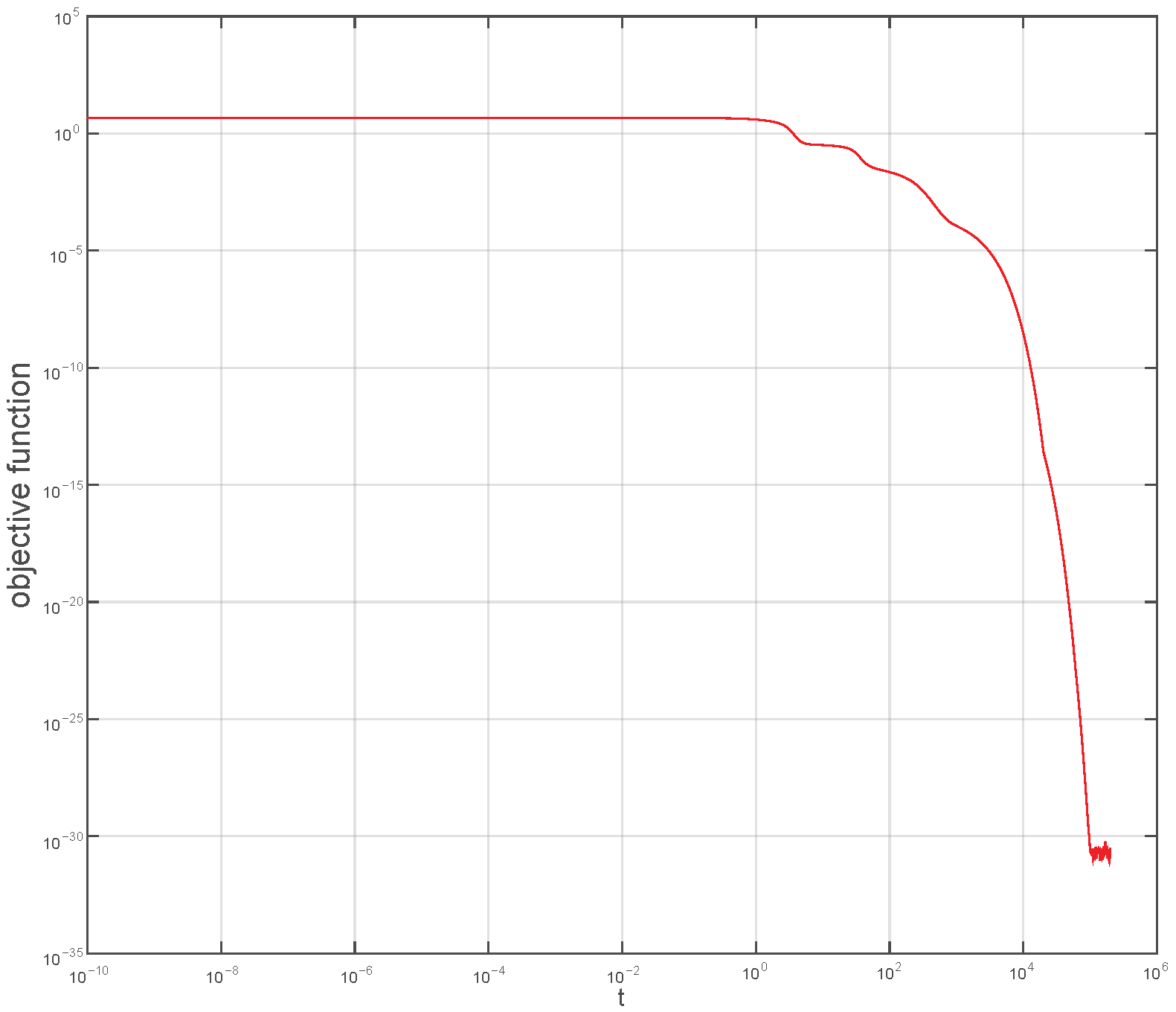 Figure 5 illustrates the evolution of the objective function, concurrently demonstrating the transformation of the coefficient matrices into block-diagonal form during total decoupling.