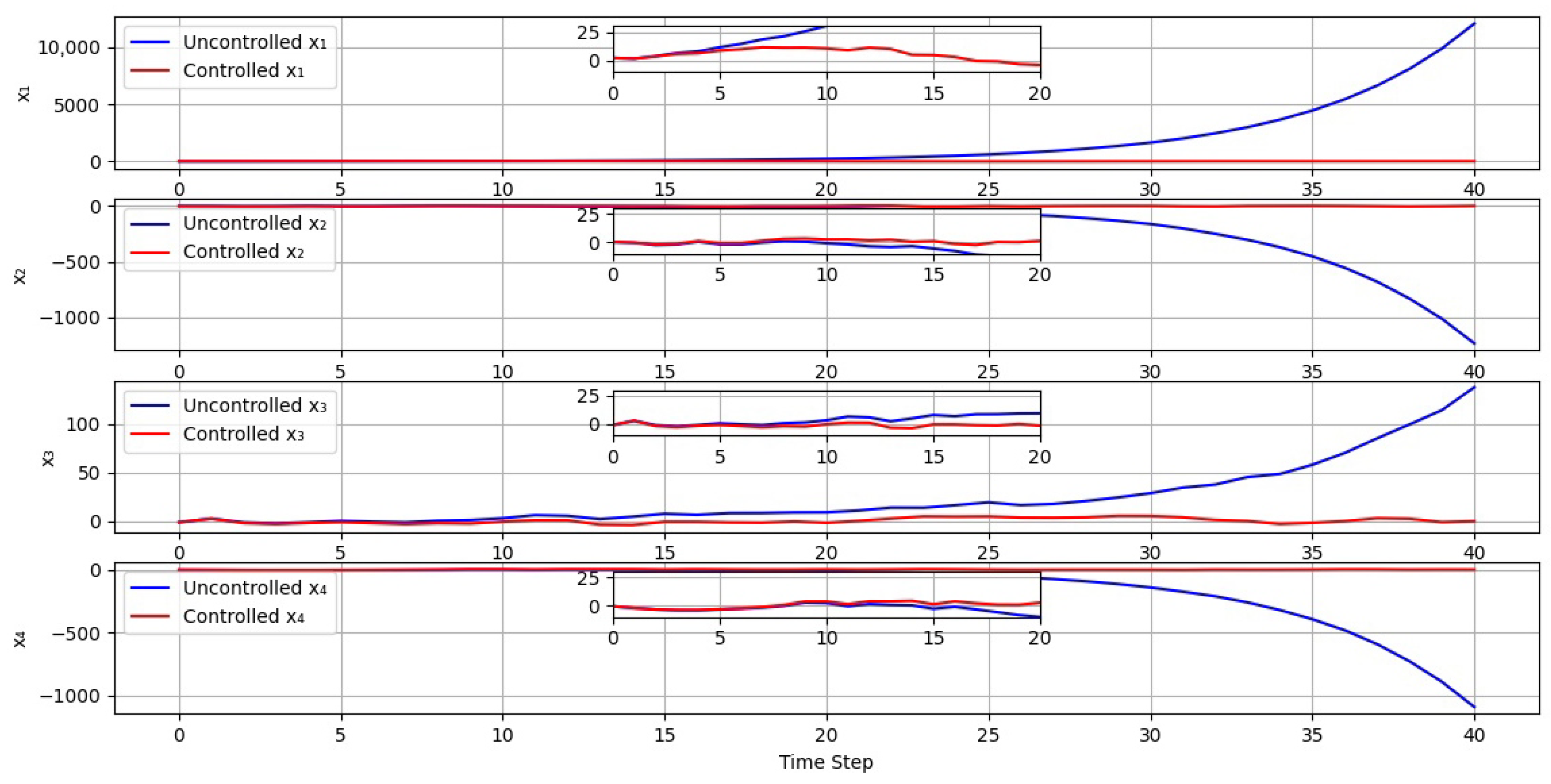 Compute optimal control (Equation ( 22)) Update state (Equation ( 1)), where - 10: