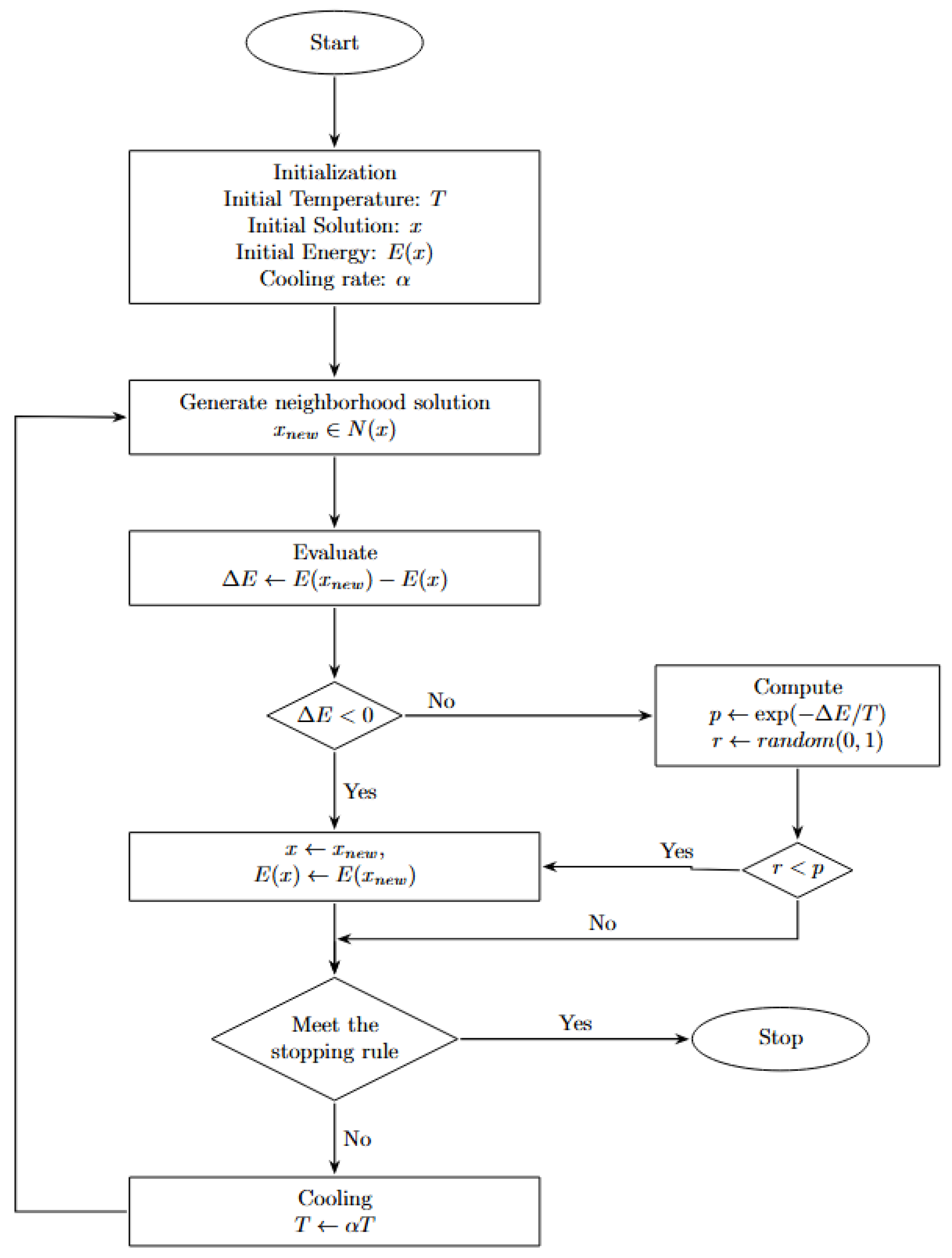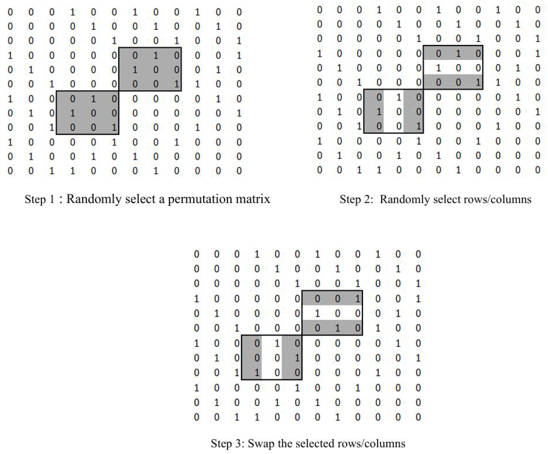 Section 2. Then, the simulated annealing method is applied, following a new neighborhood operation. The new neighborhood operator follows two steps. In the first step, it randomly picks a non-diagonal entry from the matrix