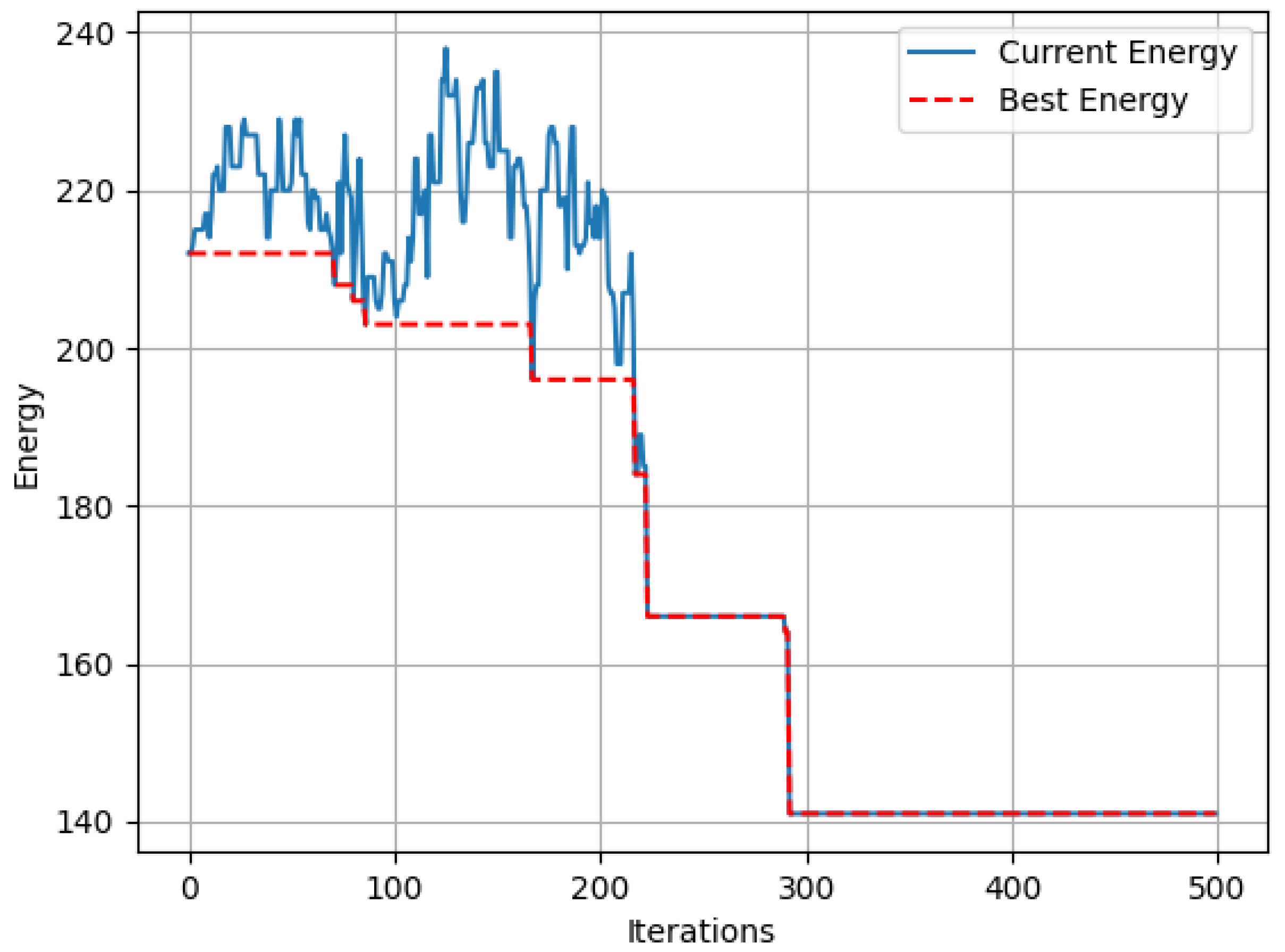 Figure 5 presents the change in the energy function of the graph with degree 7 over the first 500 iterations of the new algorithm.