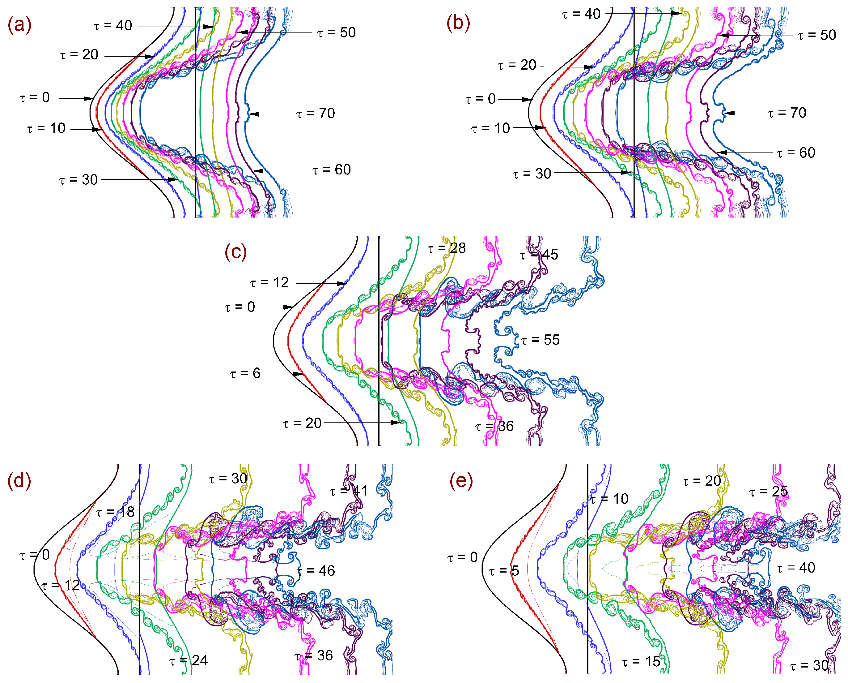 | Initial perturbation amplitude | a0/λ | 0.025, 0.10, 0.40 | A = 0.67, | Figure 29 and Figure 30: Effect of perturbation strength on nonlinear growth |