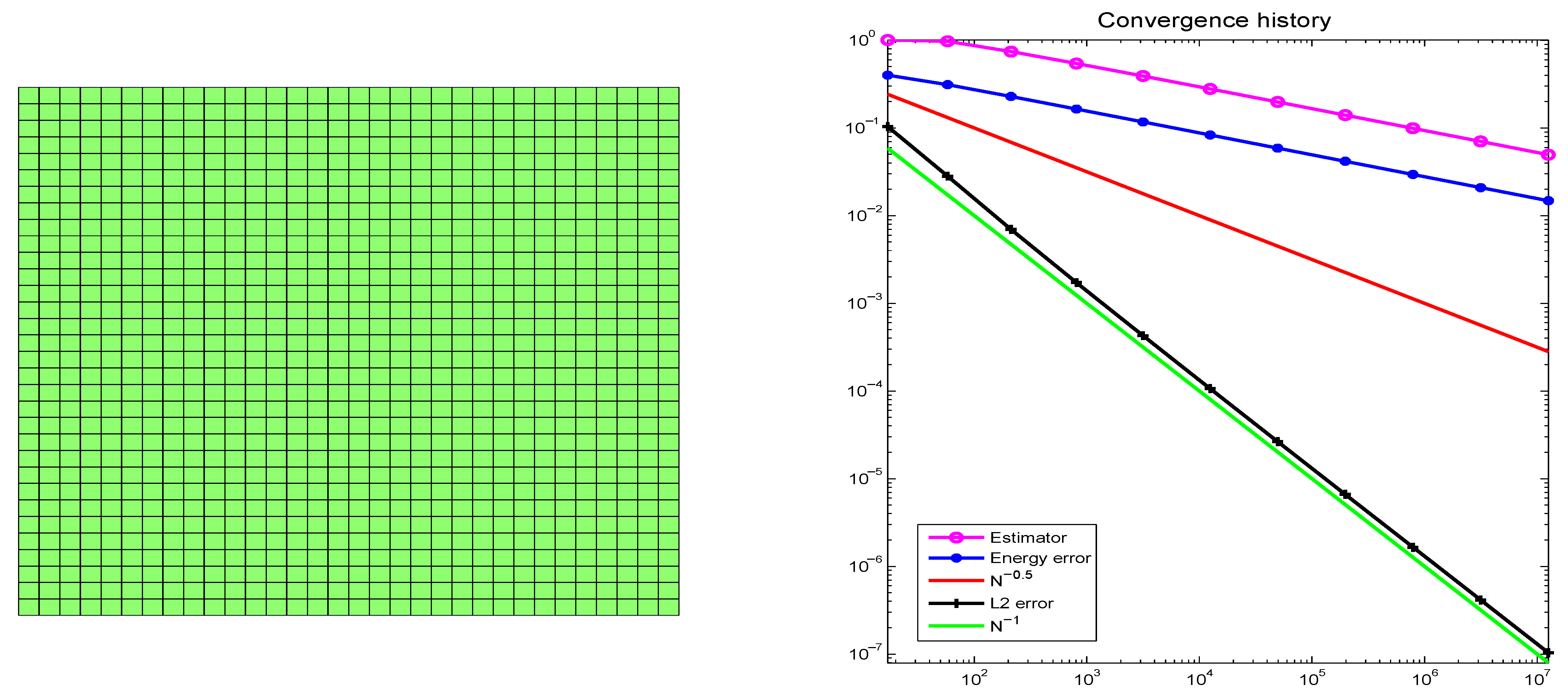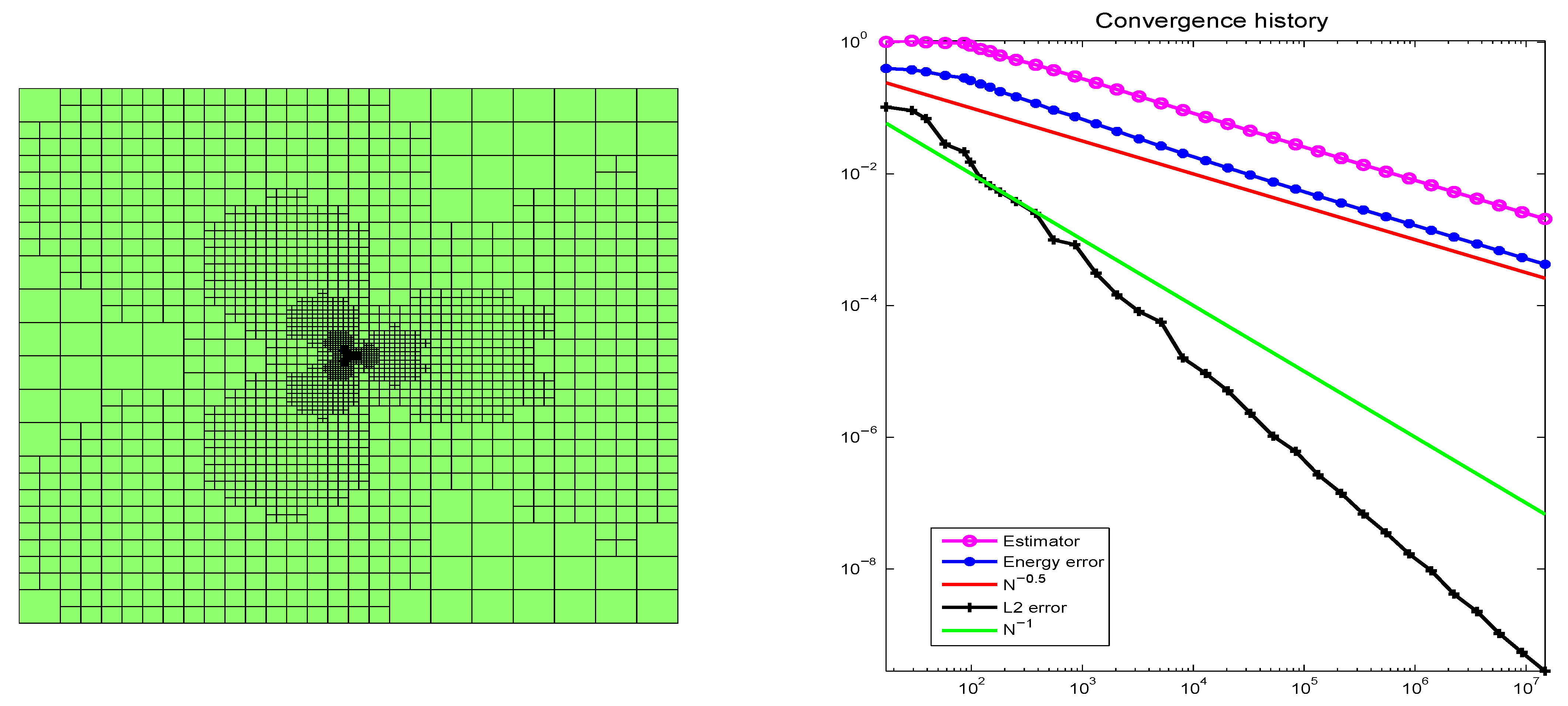 Figure 2 are the 17th-level adaptive mesh generated by the LTZ element method and the corresponding convergence history of the