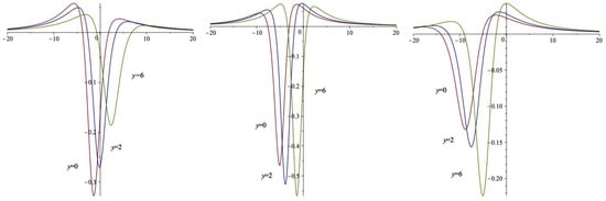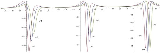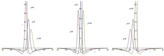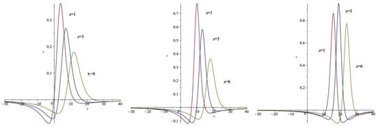 Condition (35) guarantees in (30), keeping f strictly positive and thus ensuring the analyticity of across the entire -domain. The conditions in (36) and (38) essentially act as two dispersion-parameter constraints, emphasizing that the formation of lump waves stems from the linear dispersive terms. Interestingly, in either case, and and and , the other dispersion coefficient or could be positive or negative, generating lump wave solutions.