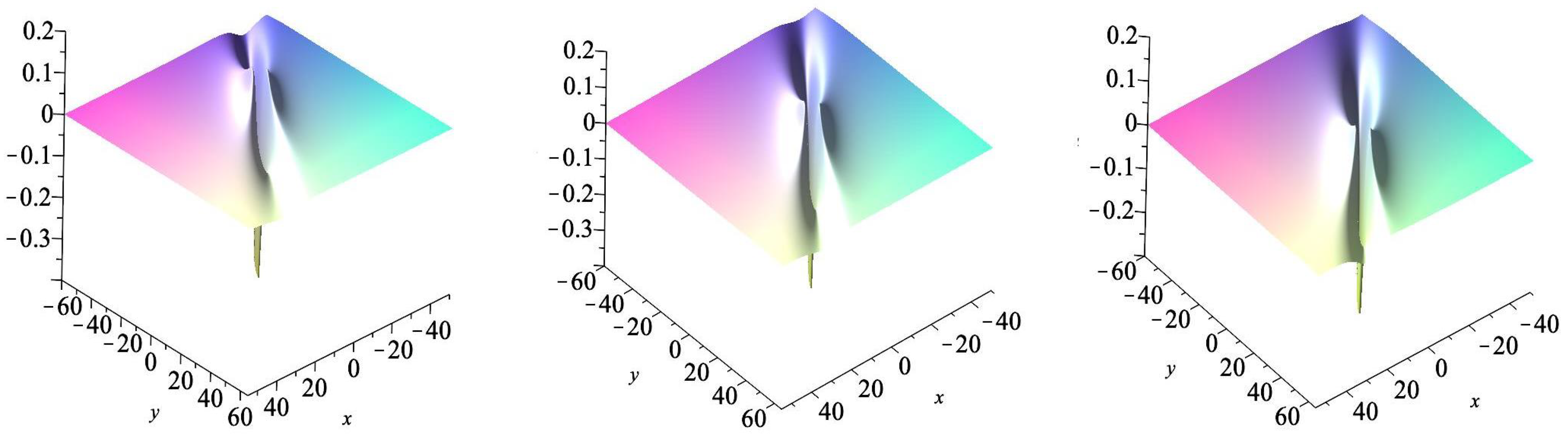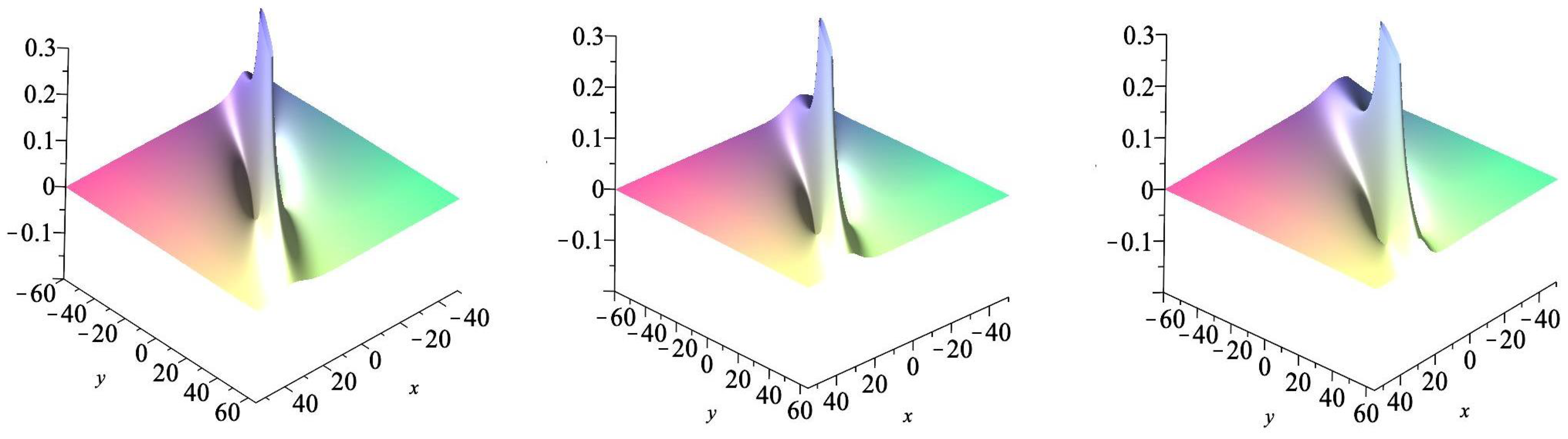 - Satsuma, J.; Ablowitz, M.J. Two-dimensional lumps in nonlinear dispersive systems. J. Math. Phys. 1979, 20, 1496–1503. [Google Scholar] [CrossRef]