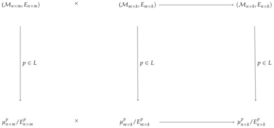 We also say that for every the elements of are elements in of the order . Using Proposition 1, we get that for all , and for any , the multiplication of matrices of dimensions and induces a multiplication in the corresponding quotient sets (see Figure 1).