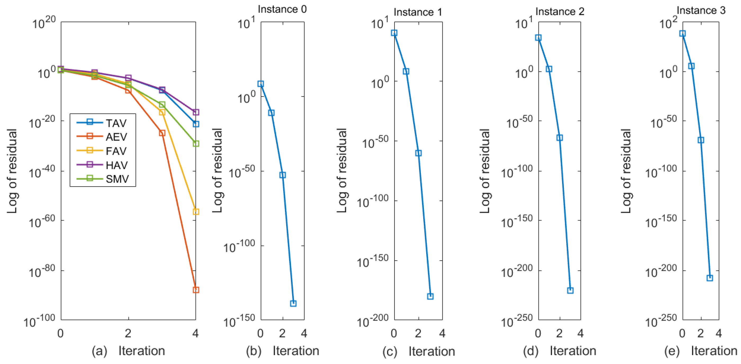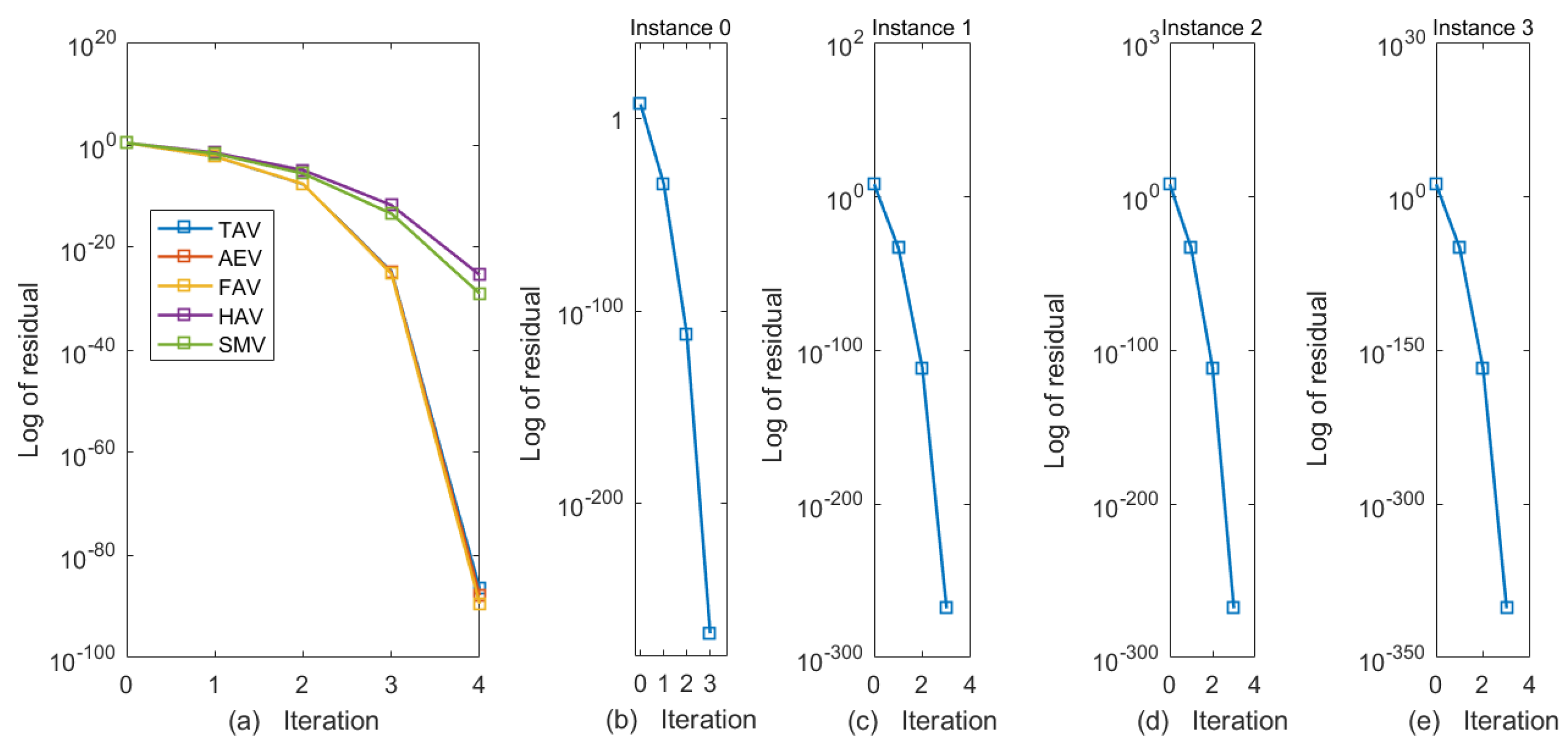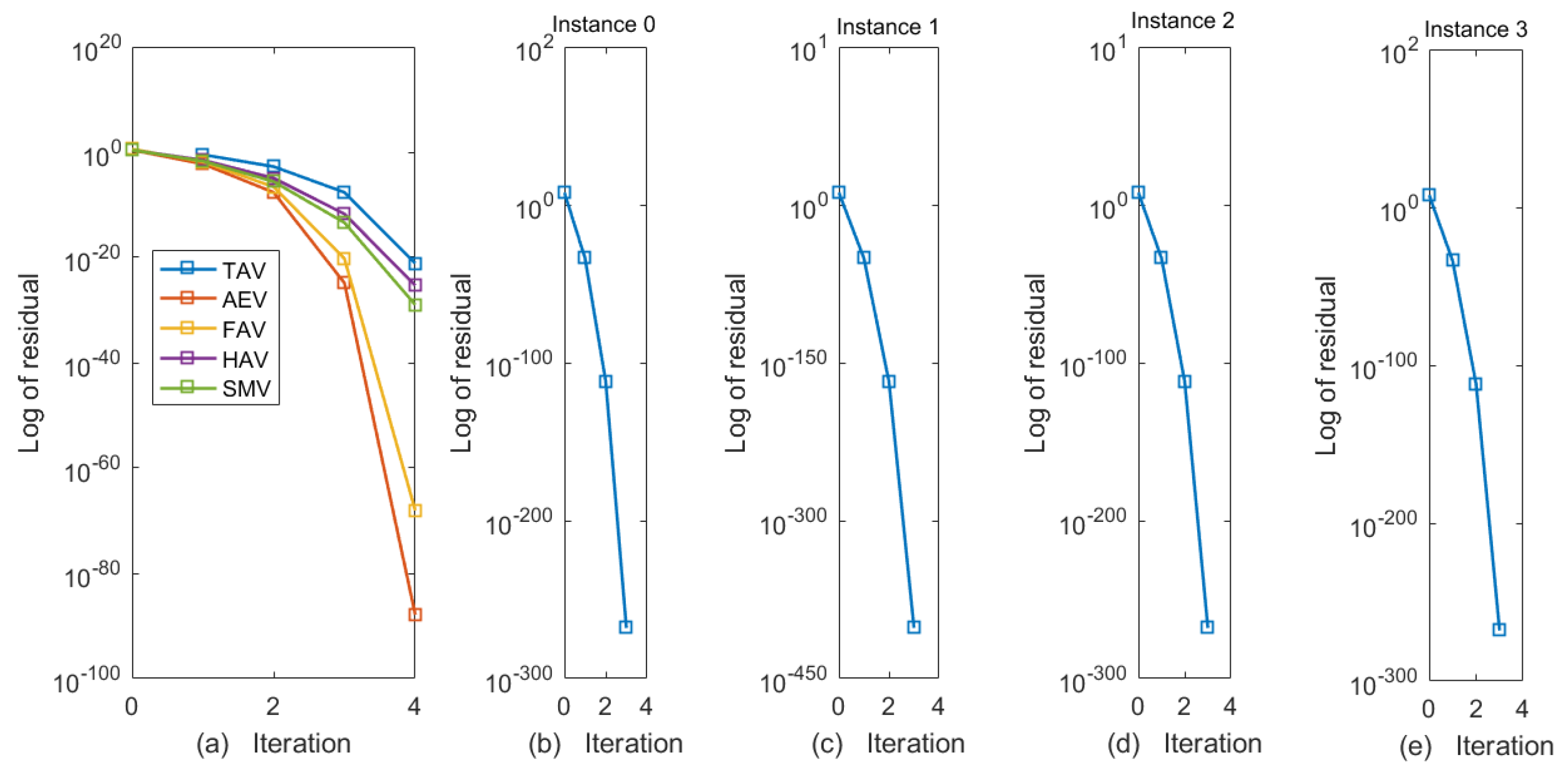 Comparison of residual decay of SMV-AN for instants 0–3 (Example 4).