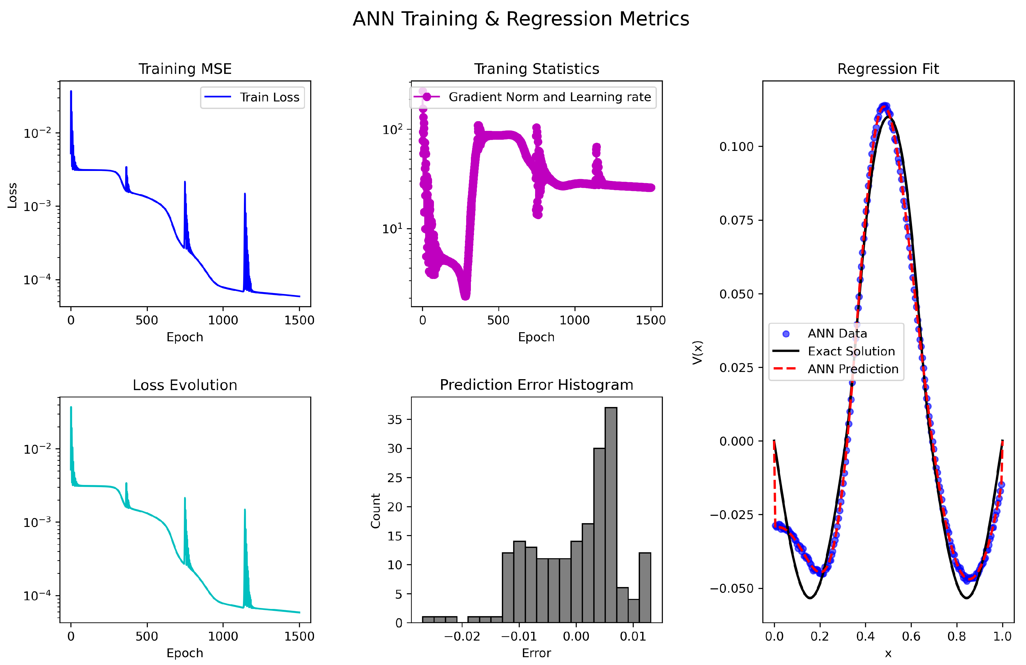 The ANN-based SMV-AN scheme’s training performance, MSE, gradient evolution, error histogram, and regression accuracy for solving (