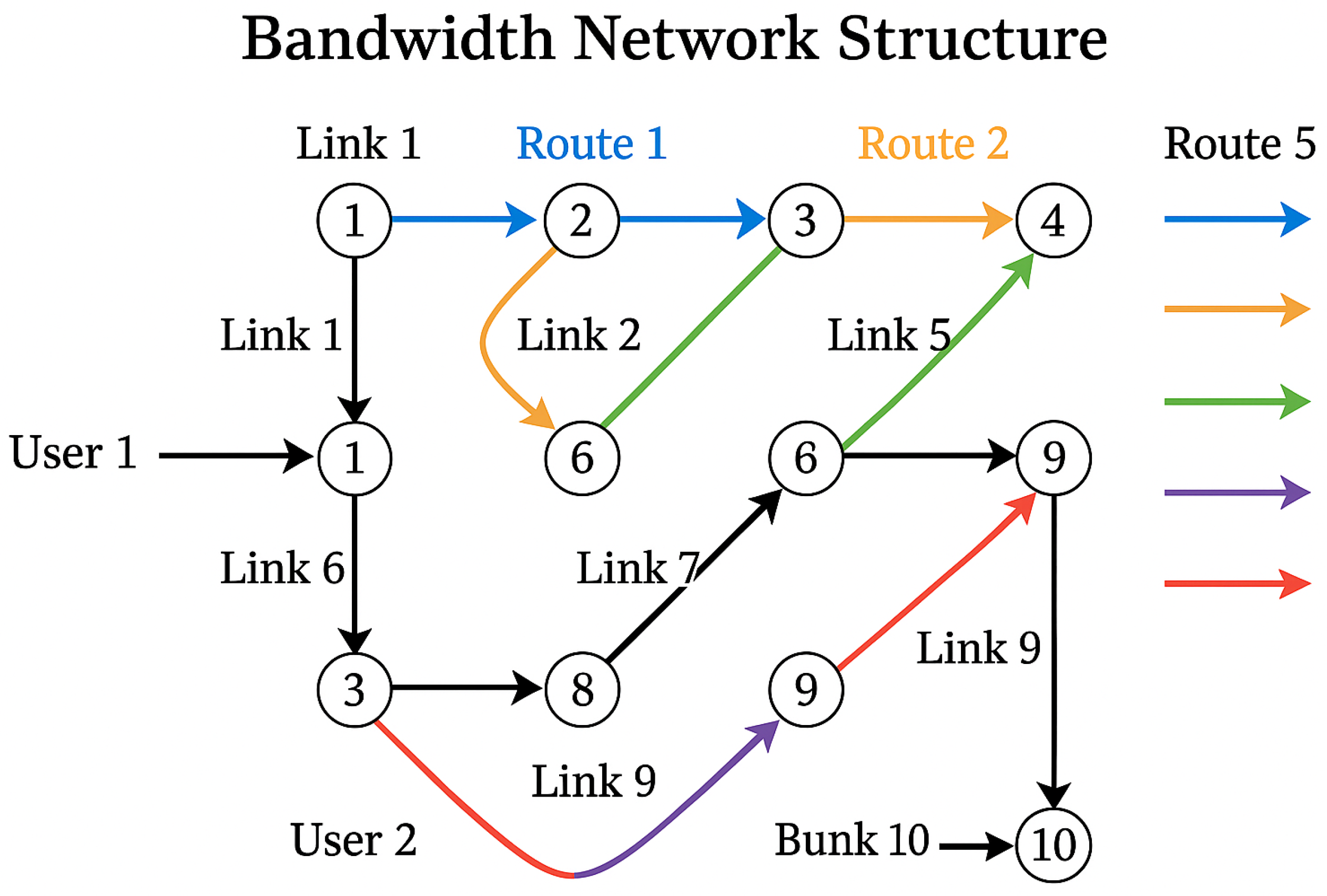 | Link | Incident Routes | Example Load | Suggested Capacity | Slack (-Load) |