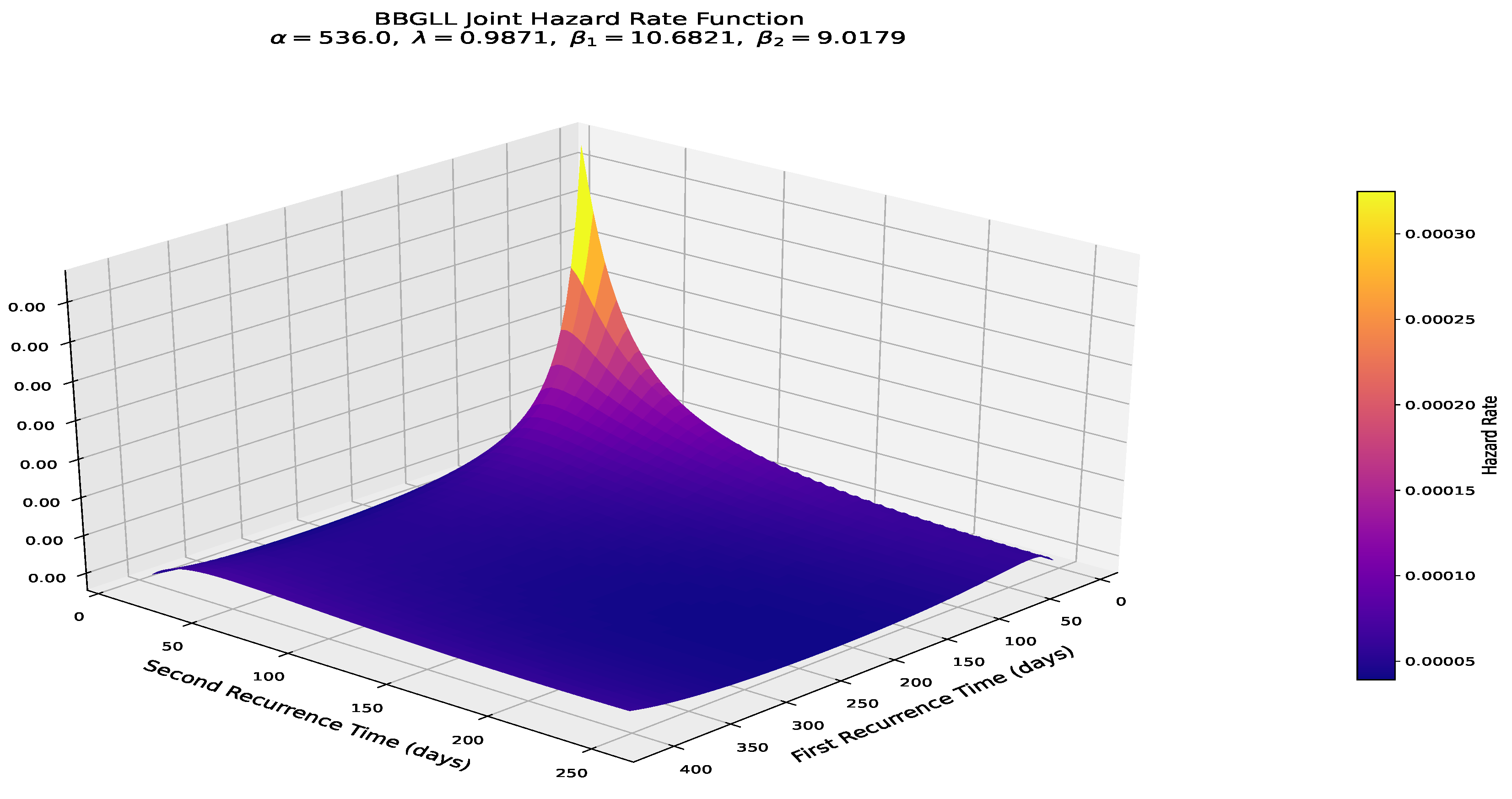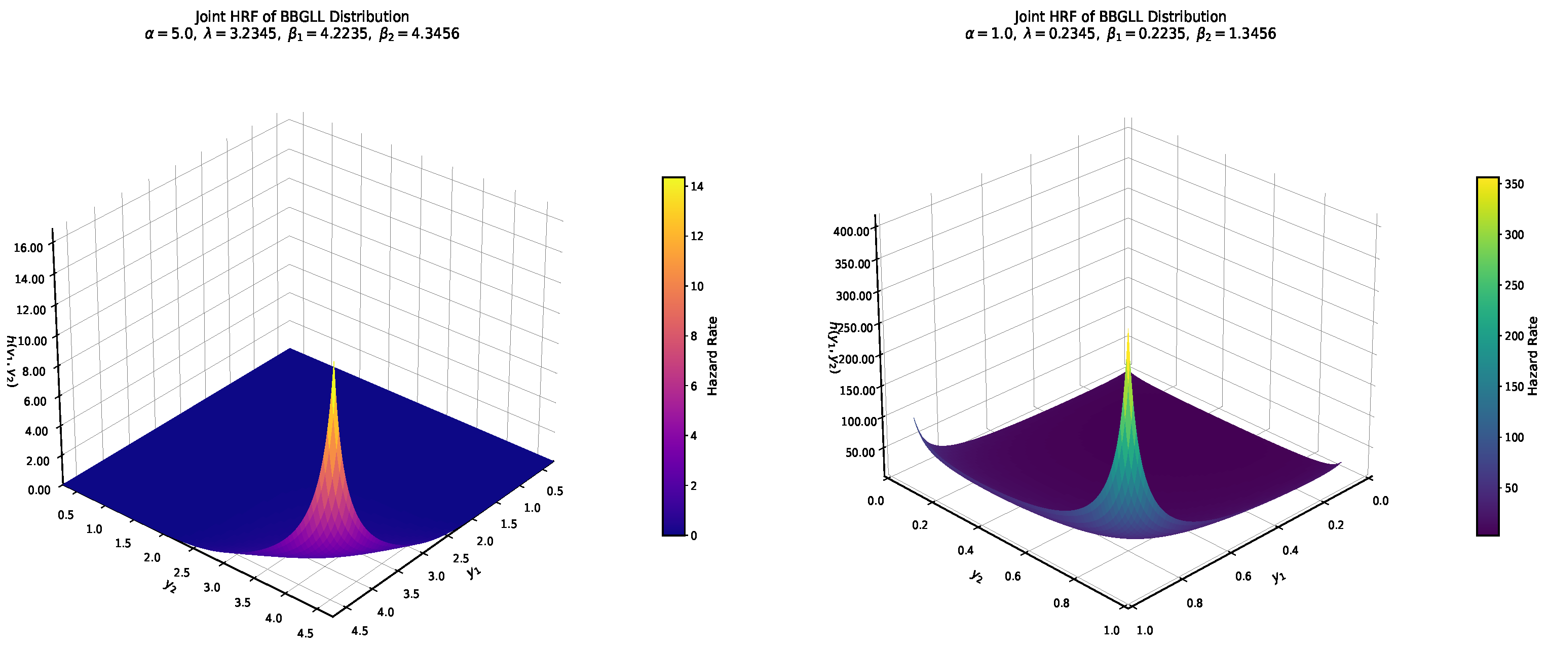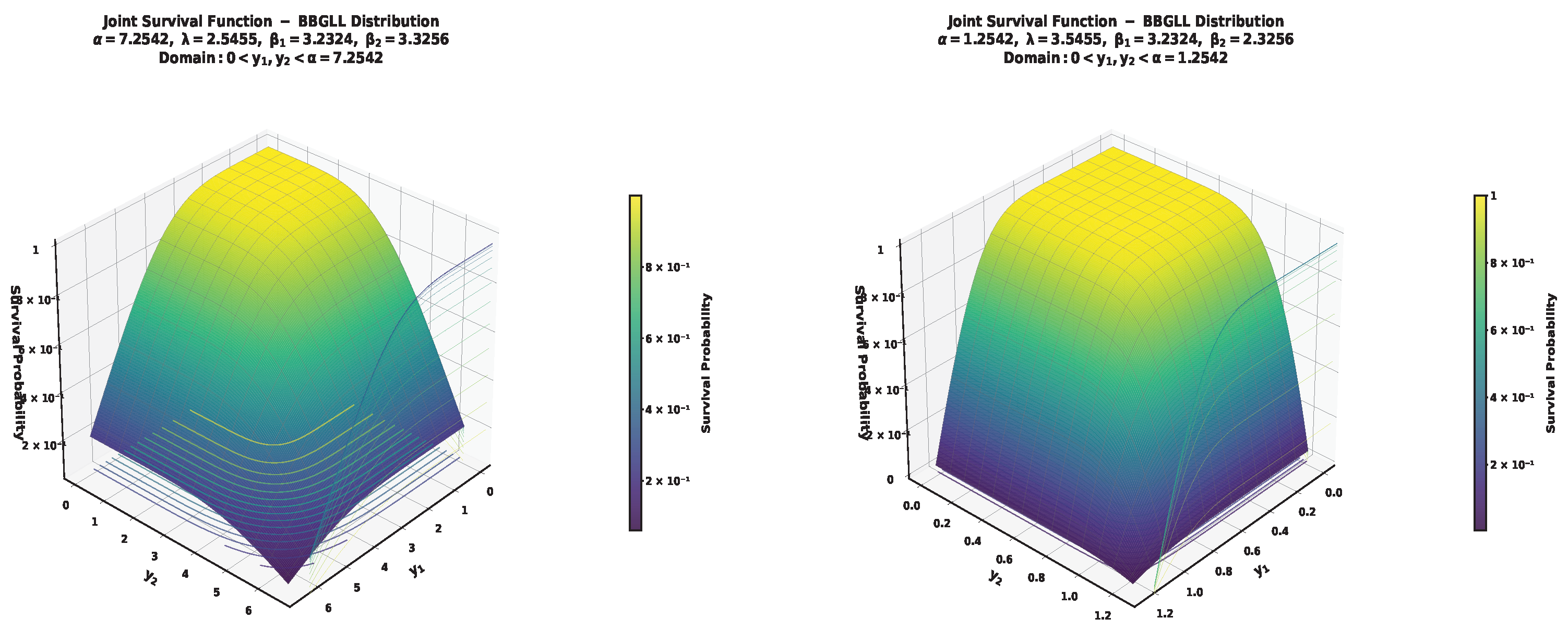 2.3. Bivariate Bounded Gompertz Log-Logistic Distribution
