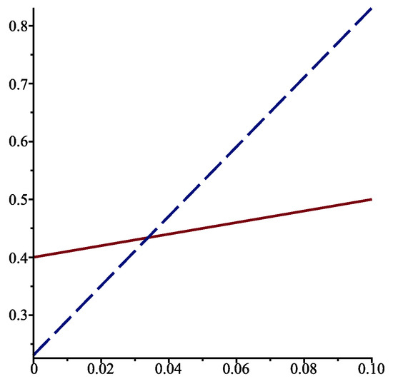 Making use of the mathematical software program Mathematica (https://www.wolfram.com/mathematica/online/), we find that the solution to systems (27) and (28), together with Equation (9), is