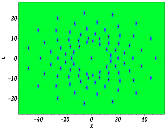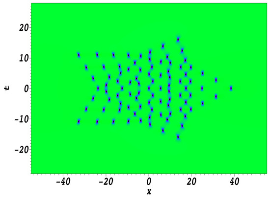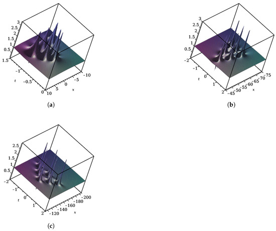 Another important result given in [52] was to construct explicitly quasi-rational solutions of the NLS equation. The idea was to make a transition to the limit when a parameter () tended toward 0. These quasi-rational solutions are given in [52] as a limit of a ratio of two Wronskians of order .