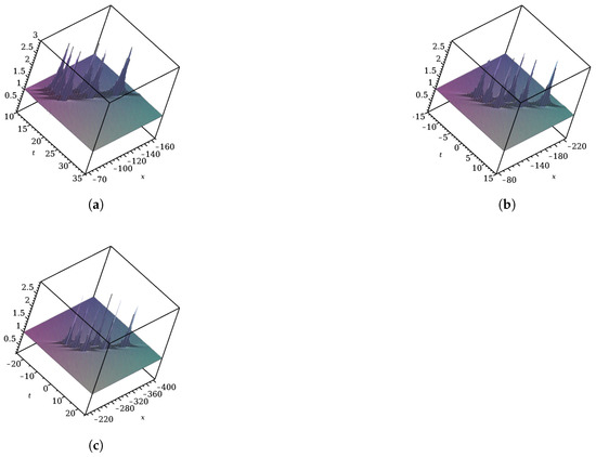 Another approach uses the Zakharov–Shabat system and the so-called Darboux transformations. Akhmediev and his collaborators have used this method in a whole series of articles to build higher-order solutions from the years 1986 to 2013 [15,16,17,18,19,20,21,22,23,24,25,26,27] until order 4. Numerical studies have made it possible to carry out a detailed classification up to the order 6 [28].