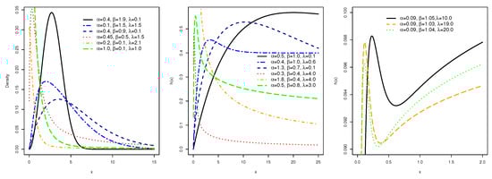 Figure 1 displays some possible shapes of the PDF and FRF of the HWE distribution for some parameter values.