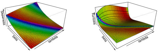 Figure 2 shows that for fixed the skewness is decreasing then increasing as both and increase in the interval ; meanwhile, the kurtosis is also decreasing then increasing as both and increase in