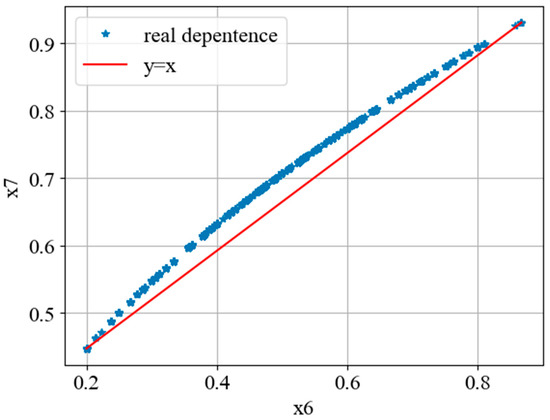 As can be seen in Figure 3, the parameters are highly correlated. It is well known that when the correlation coefficient is very close to 1, this indicates a linear relationship between these parameters. To verify that there is indeed a linear dependency between parameters , we will additionally plot a graph with parameter on the x-axis and parameter on the y-axis (Figure 4).