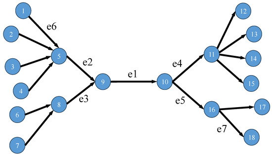 - Generate edges’ importance. Substitute the sets of parameter combinations into Equation (16), respectively, and generate sets of edges’ importance.