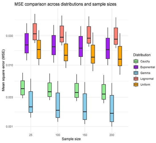 We analyzed the MSEs of the proposed estimators and other existing estimators for each distribution and correlation setting using the following techniques proposed by [29,30,31] in the R software (latest v. 4.4.0) to evaluate their robustness and efficiency.