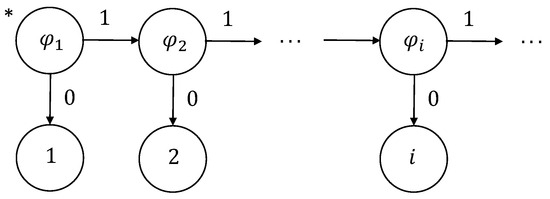 A formula from the set is associated with each predicate node of the path . Let be a predicate node that is labeled with a formula and let the edge of the path leaving the node be labeled with the number c. Then, we correspond to the formula if and the formula if .