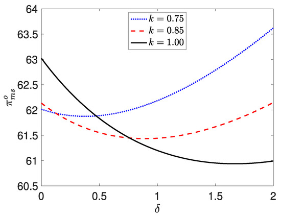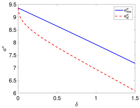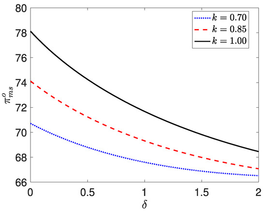 Comparing Figure 3 and Figure 4, it can be observed that if the advertising cost coefficient is low (), the reduction in advertising level leads to a smaller decrease in costs, while customer demand significantly decreases, resulting in a reduction in the service provider’s profit. However, if is high (), the reduction in advertising level can effectively save advertising costs, leading to a profit increase after an initial decrease. This highlights the importance of the advertising cost coefficient in influencing the service provider’s profit.