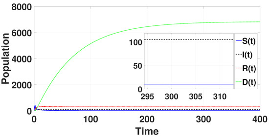 Since, for when and . Therefore, the Routh-Hurwitz criterion is satisfied [47]. Consequently, the positive equilibrium is locally asymptotically stable when and are both zero.
