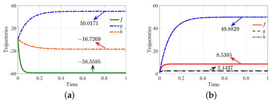 In this subsection, we present an active controller to discuss the stability of system (1). To enhance clarity and avoid confusion, the variables , , and were replaced with f, g, and h, respectively, to obtain