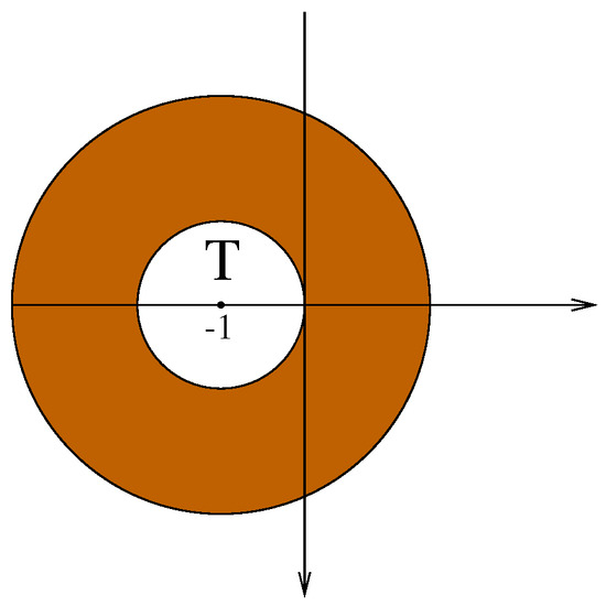In [9], the proofs above (of, for example, [8]) are modified to prove that if has a “reentrant” (i.e., nonconvex) corner at (e.g., Figure 1), then the nontangential radial limits at P of f exist without regard to the restrictions on the boundary data noted above. To see that the conformal parameterization of the graph of f is continuous on the closure of the parameter domain, one uses the Courant–Lebesgue Lemma as noted and particular comparison functions, specifically catenoids for and unduloids for to control the oscillation of the third component of Y and prove that Y is uniformly continuous on This topic was investigated further, illustrated in [37] (Example 1.4) (see also [38]) (p. 430) when Q is the minimal surface operator on and (see Figure 2). In this case, is not locally convex at any point of the inner boundary of and f need not equal on Standard results (e.g., [38] (Theorem 3)) show that To see that Y is continuous on the closure of the parameter domain, one works in a neighborhood U of P and uses “Bernstein functions” ([37] (Lemma 2.3)) to control the oscillation of the third component of the conformal parameterization of the graph of f restricted to (a catenoid would have worked just as well for this particular example). The continuity of f at P then follows from the symmetry of the problem.
