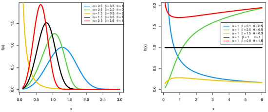- Johnson, N.; Kotz, S.; Balakrishnan, N. Continuous Univariate Distributions, 2nd ed.; John Wiley & Sons: New York, NY, USA, 1994. [Google Scholar]