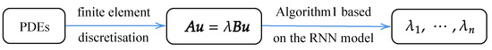 Numerical methods for solving large-scale generalized eigenvalue problem, such as the subspace iteration method, Davidson’s method, and Lanczos’s method [18] have been extensively studied. Traditional algorithms are computationally expensive for such problems, while neural networks offer significant performance improvements through parallelization [19,20]. A Recurrent Neural Network (RNN) is an exemplary model for dynamic computation in neuroscience and machine learning, which has more computational power than feedforward neural networks and has a much better theoretical convergence rate compared to other previous correlated neural network methods [21,22,23]. This network has good convergence and evolves as a decreasing capacity function for a given initial state, eventually reaching a stable state. Not only does it function as an associative memory, it also shows remarkable potential in solving optimization problems. Since its energy function tends to be minimized, in principle, any optimization problem whose objective function can be expressed in the form of an energy function can be solved by using an RNN. Stability in this network is closely related to its capacity for associative memory. Researchers have proposed a large number of easy-to-simulate circuit implementations of RNN models for solving optimization problems as well as their highly parallel processing capabilities, including RNN models for solving matrix eigenvalue problems [24,25,26,27,28]. Mathematically, this neural network approach transforms the eigenvalue problem into a dynamical system of ordinary differential equations (ODEs), often termed neurodynamic optimization.