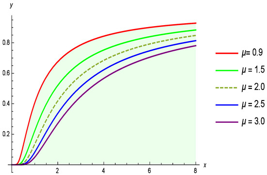 Figure 1 shows the PDF, while Figure 2 illustrates the CDF of the G-IID for different values of the parameter , with held constant. The G-IID was selected for this analysis due to both its theoretical properties and empirical performance in modeling positively skewed, heavy-tailed lifetime data. This type of distribution is well-suited for capturing the nature of COVID-19 mortality data, which often exhibits a long right tail reflecting delayed fatalities or rare high-mortality days during outbreak peaks.