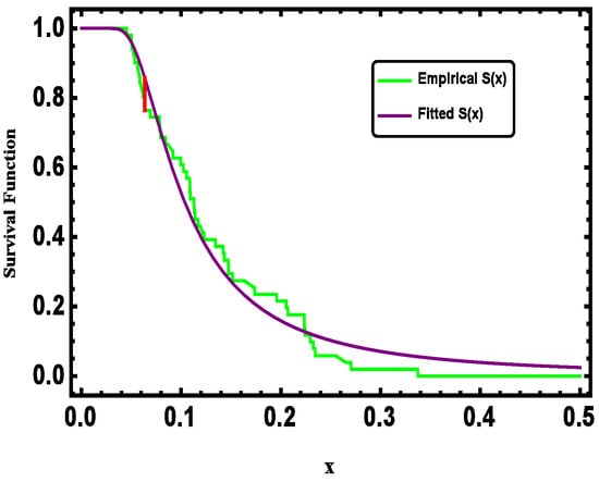 For visual assessment, Figure 3 compares the fitted and empirical survival functions of the G-IID, demonstrating close agreement between the two. Further validation is provided by the observed vs. expected probability plots (Figure 4) and quantile plots (Figure 5), reinforcing the model’s appropriateness for analyzing the dataset.