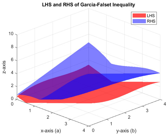 - Case I.If then for , following inequality, it must hold for S to satisfy the conditionDivide the above inequality into two parts:If we consider (22), then for , we haveandIf we take (23), then for the given range of and , we haveandFrom the above inequalities, it is clear that S has the Garcia-Falset property.