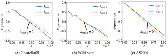 ([39,40]). Suppose that H is an real matrix and that is simple and real. Let r and l be right- and left-eigenvector corresponding to , respectively. Suppose is another arbitrary real matrix. Consider the following perturbation , where . If , then the perturbation on eigenvalue can be estimated as