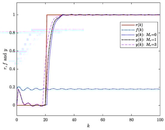 The closed-loop output responses to the step reference signal (37) are shown in Figure 1. The corresponding tracking errors and control inputs are depicted in Figure 2 and Figure 3, respectively.