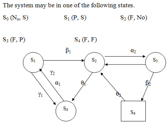 The operational behavior of the system is modeled through state transitions that depend on the condition of each unit and the status of the switching mechanism. The key notations used to represent the states are as follows: