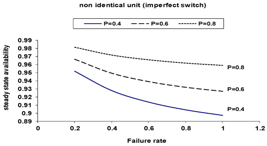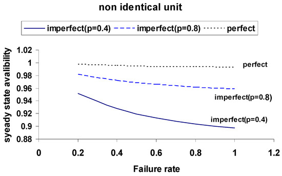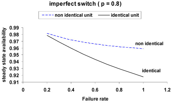 Figure 12. Comparison of Steady-State Availability for Identical and Non-Identical Units with Imperfect Switch (p = 0.8).