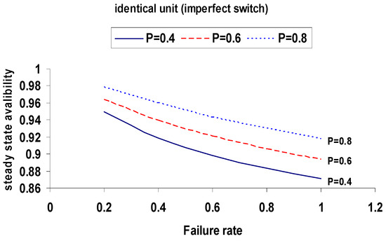 Figure 10. Steady-State Availability for Identical Units under Different Switching Probabilities.